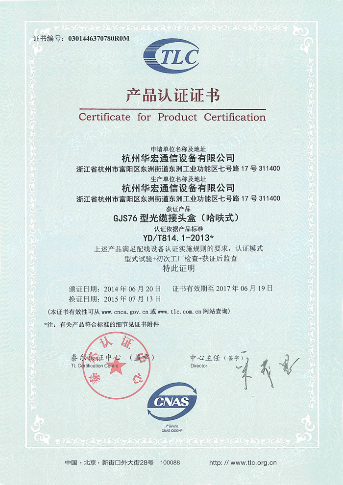 产品认证证书